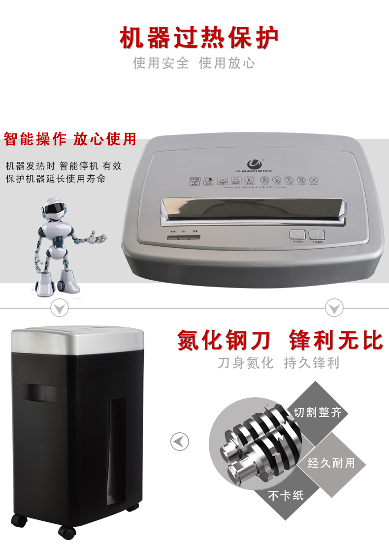 优玛仕U-150电动办公碎纸机 大功率碎纸机 静音段